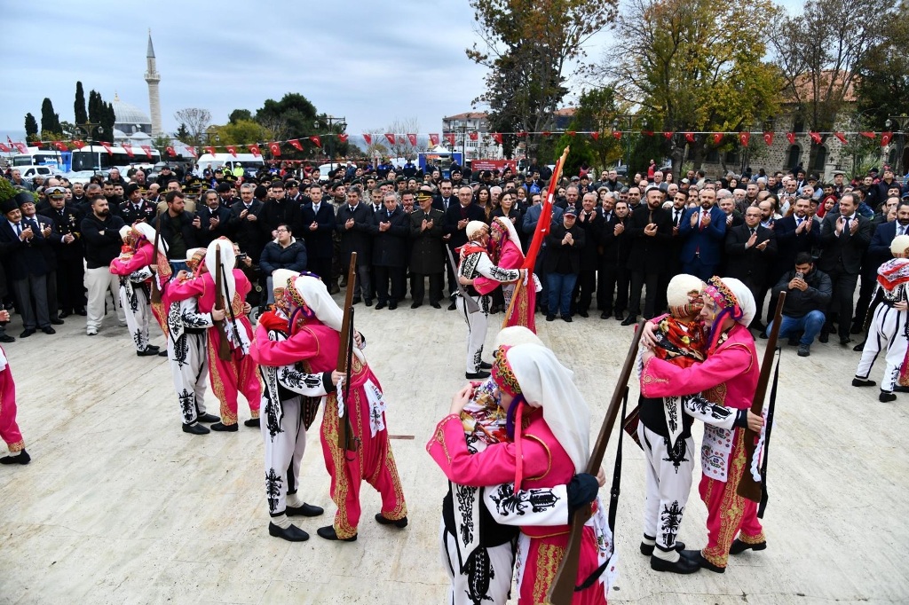 Kurumlar tarafından Atatürk Anıtı’na çelenklerin sunulması ile başlayan tören saygı duruşunda bulunulması ve İstiklal Marşı’nın okunması ile devam etti. Törende daha sonra Tekirdağ Büyükşehir Belediye Başkanı Dr. Candan Yüceer ve Tekirdağ Valisi Recep Soytürk Şeref Defteri’ni imzalayarak hitaplarını gerçekleştirdi.